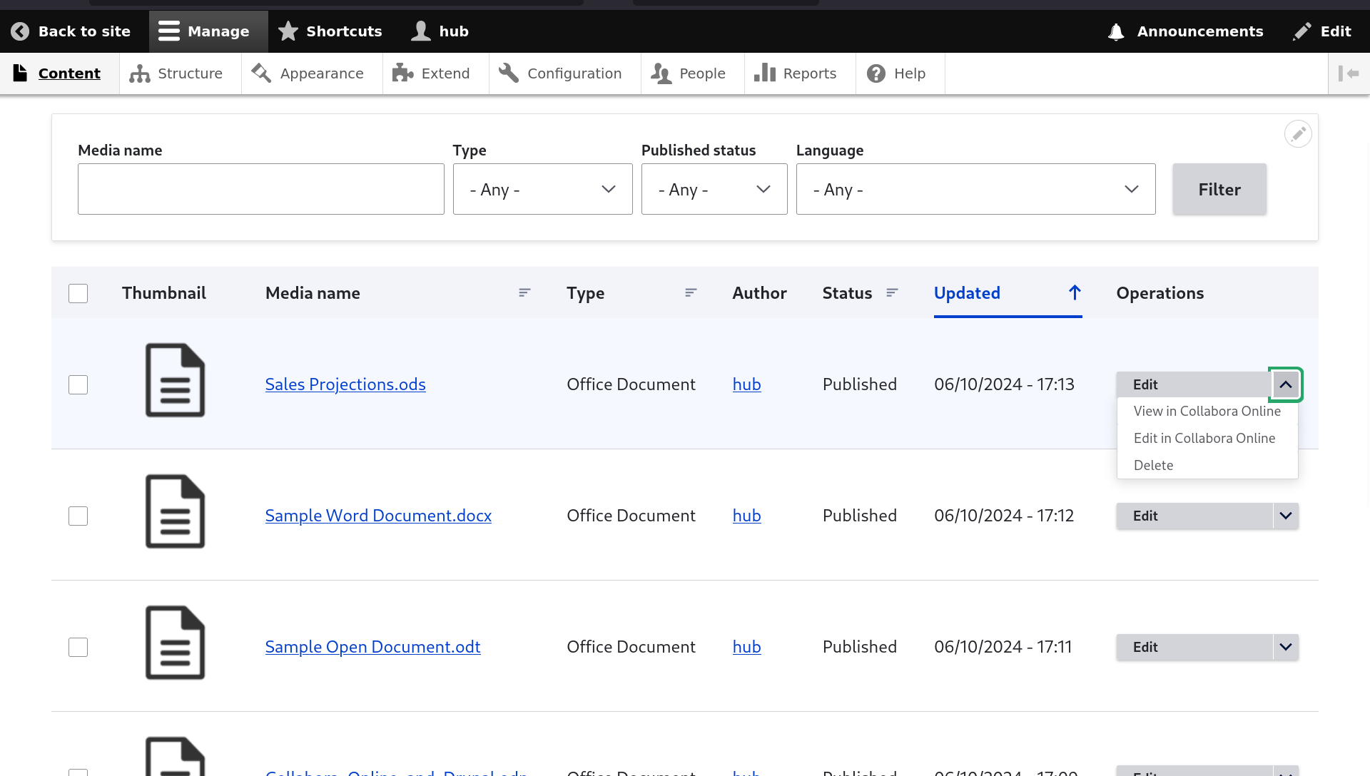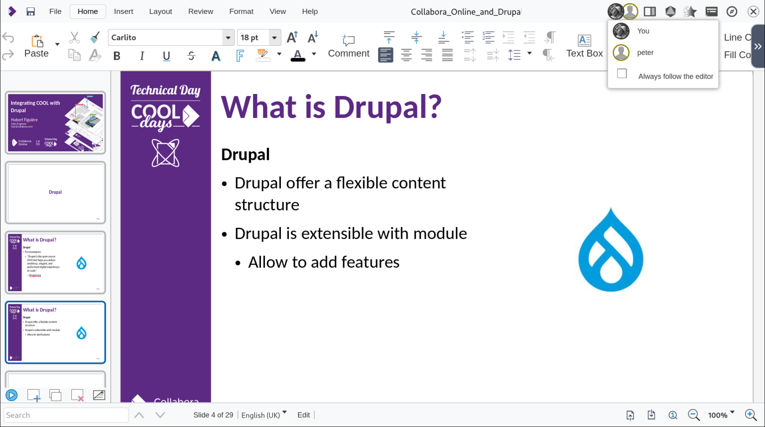 To find out more about Drupal with Collabora Online, go to https://www.drupal.org/project/collabora_online.