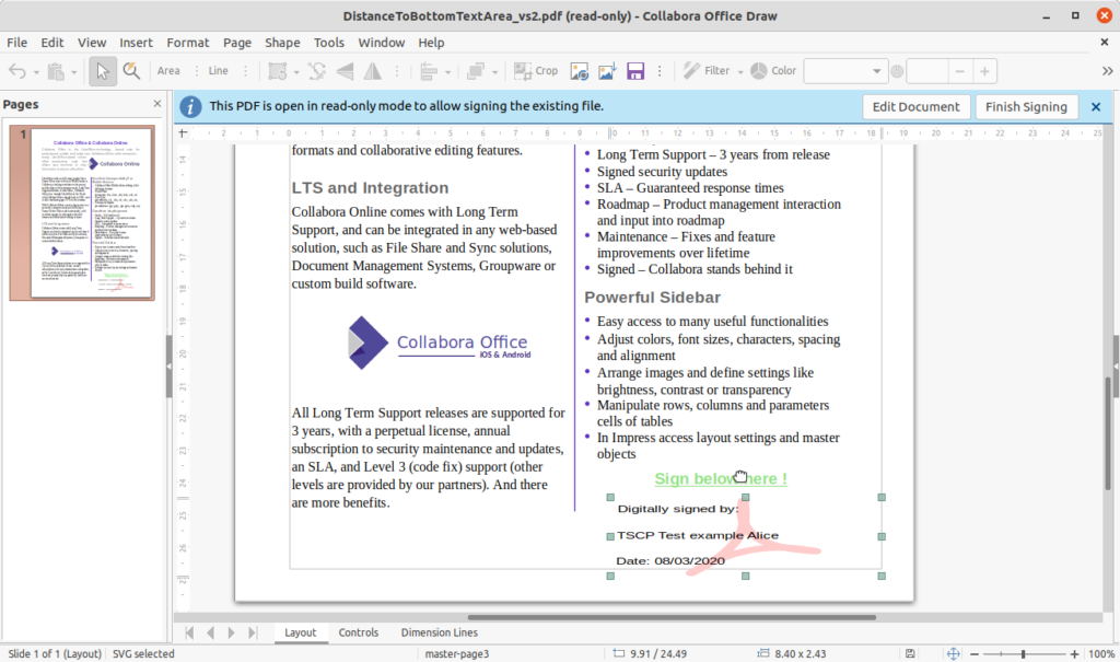 Thanks to the sponsoring of the Dutch Ministry of Defense in cooperation with Nou&Off, we introduced the ability to add visible digital signatures to exiting PDF files. This feature has been presented in a talk by Miklos Vajna during the FOSDEM 21 conference.
