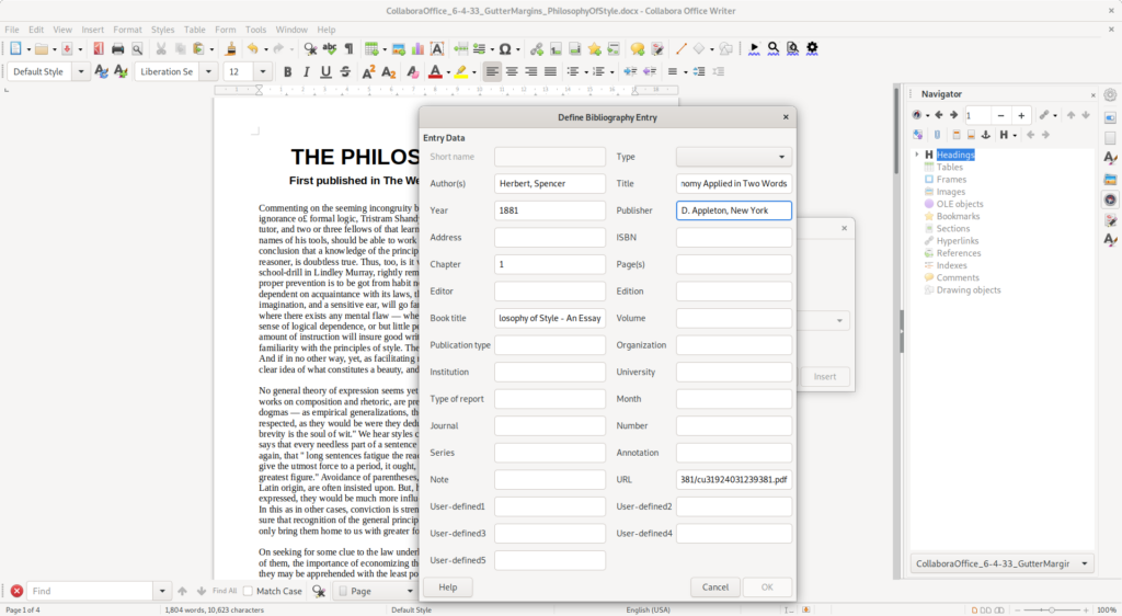 Thanks to the sponsoring of the TUBITAK ULAKBIM, the Turkish Academic Network and Information Center, we have been able to introduce several improvements to the bibliography feature in LibreOffice. We implemented the possibility to have clickable URLs inside the biographic list and also anchor links pointing to precise segments in listed PDF. Find more details about this in Miklos’ development blog.