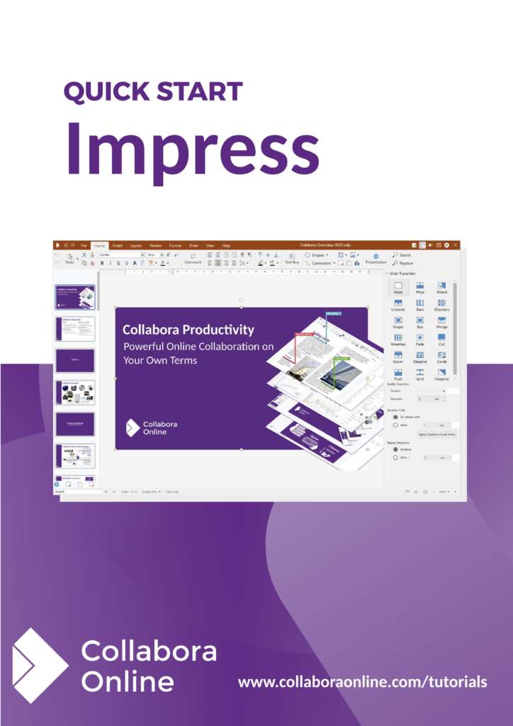Collabora Online’s applications provide you with intuitive, full-featured, collaborative document editing for word documents, spreadsheets, presentations and drawings. For more information about using the features, see our tutorials and Quick Start Guides below.